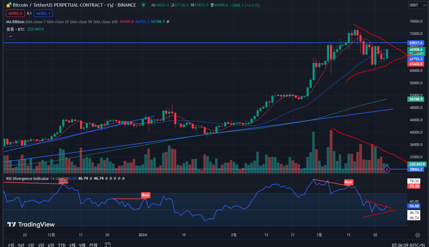 - 주요 뉴스 (반감기 4월 20일): 비트코인의 반감기 이벤트는 시장에 큰 영향을 미칠 것으로 예상됩니다.
