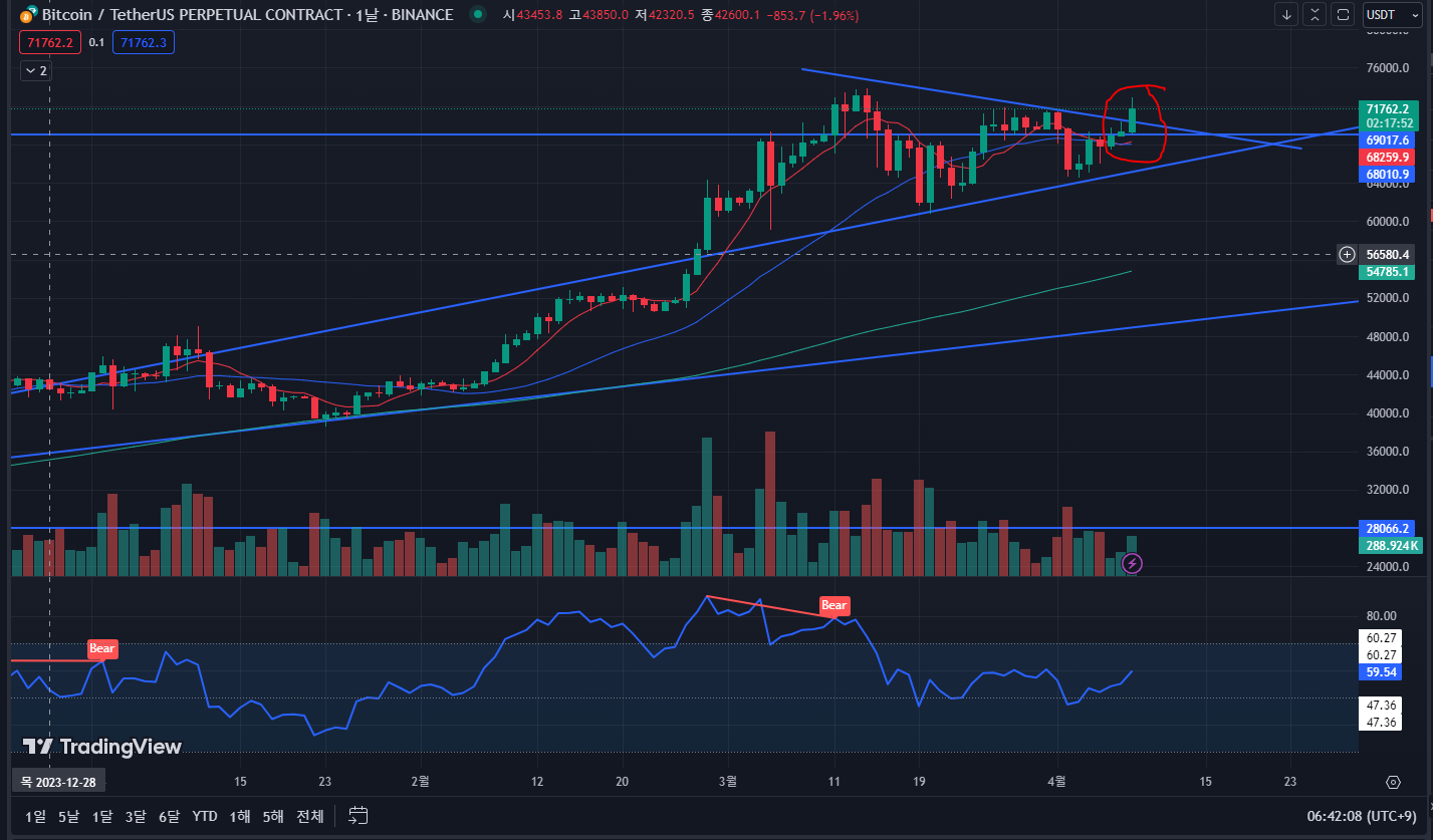 - 시장 전망: BTC는 반감기(4월 20일)와 홍콩 ETF(5월) 등의 이벤트를 앞두고 있으며, 이는 가격에 긍정적인 영향을 줄 수 있습니다.