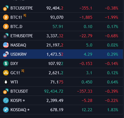 - 비트코인(BTCUSDT): 92,404.2 USD (-0.38%)