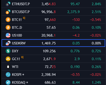 - 환율 (USD/KRW): 1,469.75 (+0.00%)