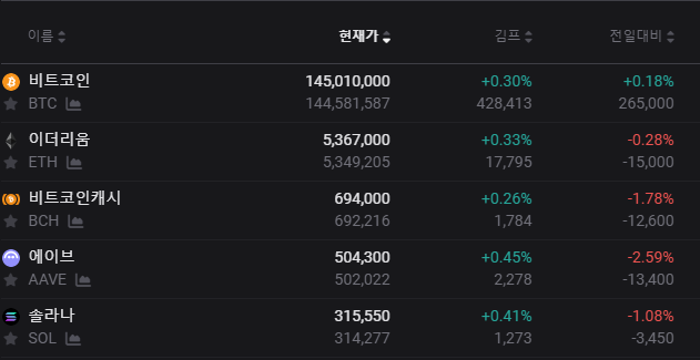 - 비트코인 현재가: ₩145,010,000 (+0.30%)