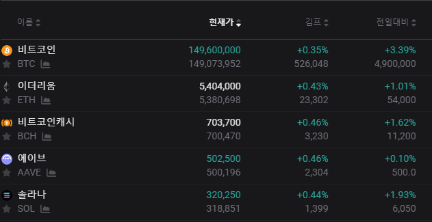 - 비트코인 현재가: ₩149,600,000 (+0.35%)
