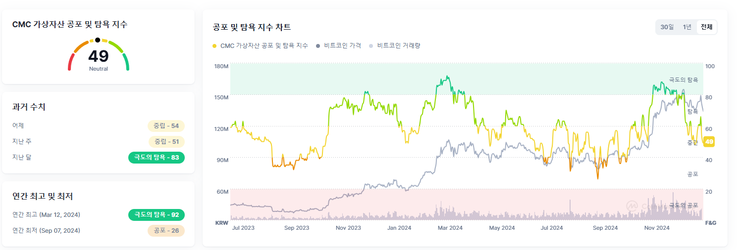 - 결론: 현재 비트코인에 대한 심리는 긍정적이며 상승세가 지속되고 있으나, 김프의 하락과 알트코인 시즌 지수의 저조는 주의가 필요함을 나타냅니다. 투자자들은 비트코인에 대한 신뢰를 유지하되, 알트코인에 대한 투자는 신중해야 할 시점입니다.