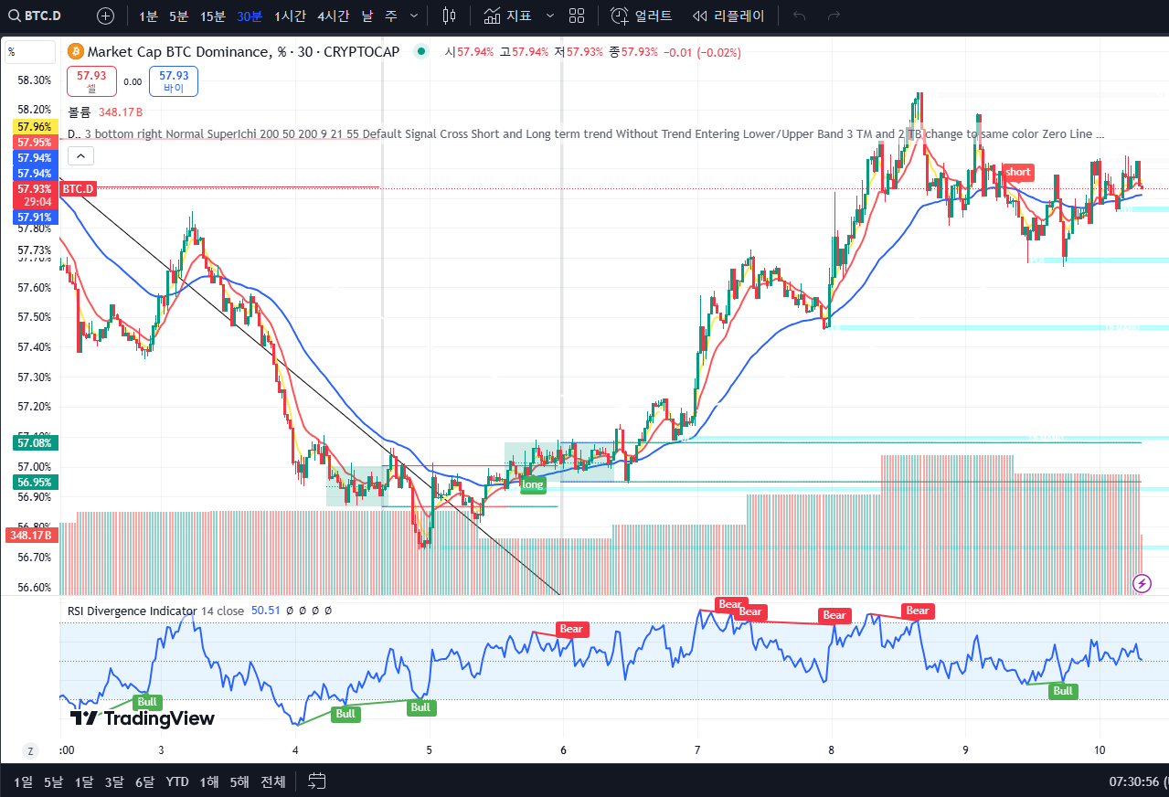 - 비트코인 도미넌스 (BTC.D): 57.94%