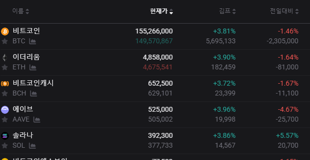 - 비트코인 현재가: ₩155,266,000 (+3.81%)