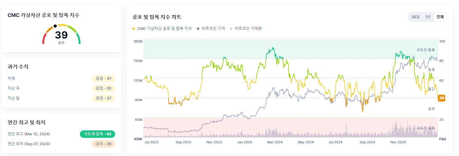 - RSI가 39.17로, 과매도 경향을 보이고 있습니다. 이는 비트코인의 점유율이 상대적으로 낮은 상태임을 시사합니다.