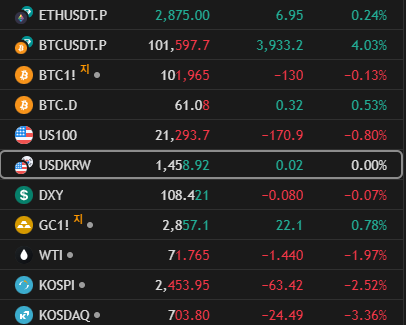 - 환율: USD/KRW 1,458.92 (변동 없음)
