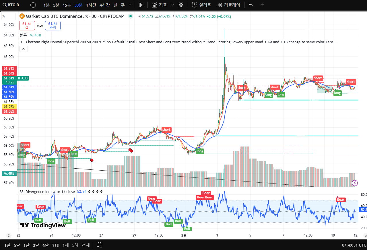 - RSI 지표 (BTC.D): 52.94