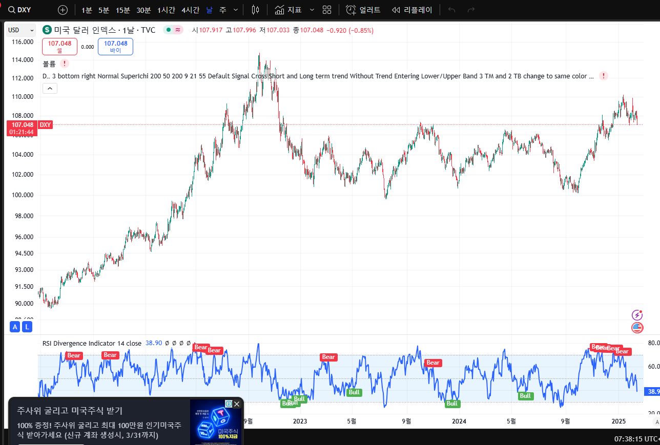 - RSI 지표 (DXY): 38.90