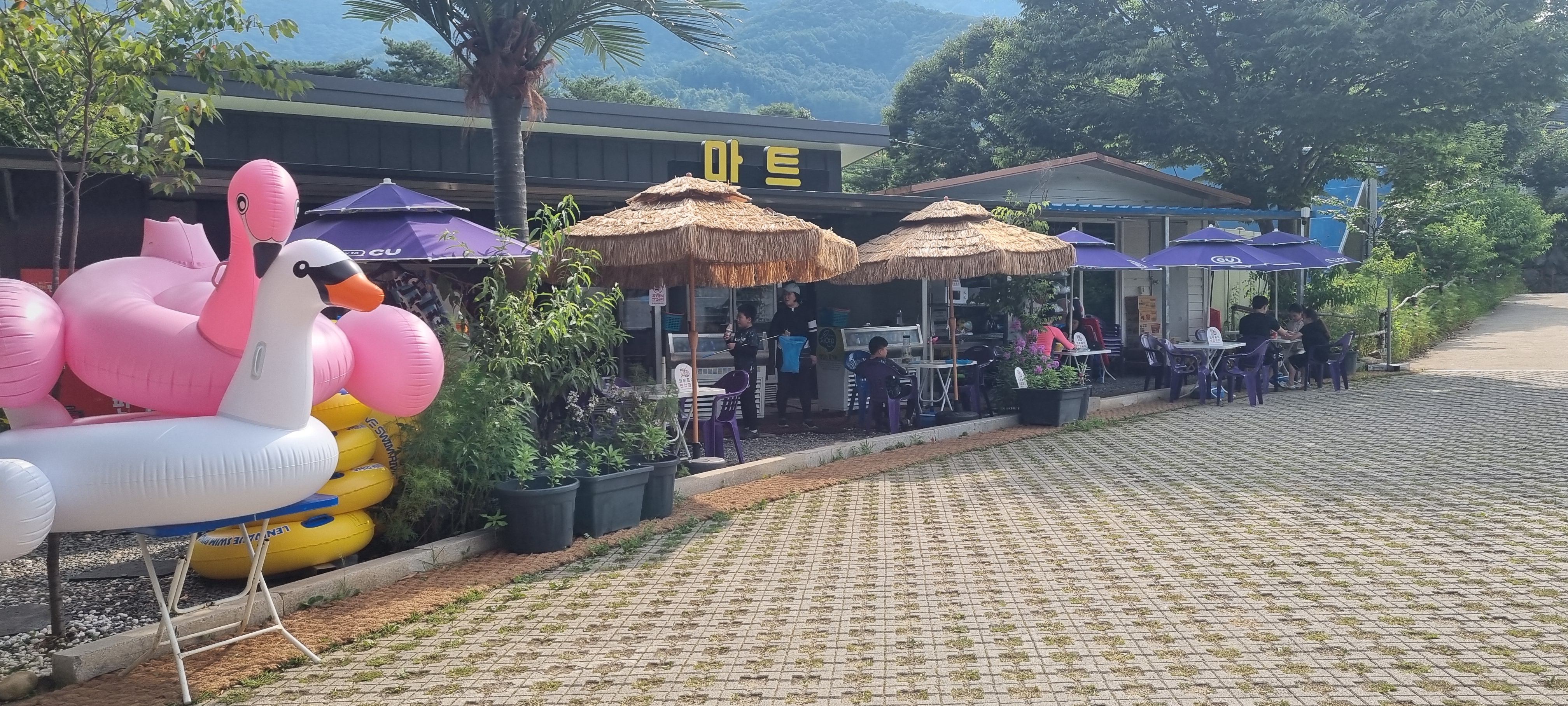 - 매점/마트 🛒 : 튜브, 과자, 라면 등 없는 게 없어요!