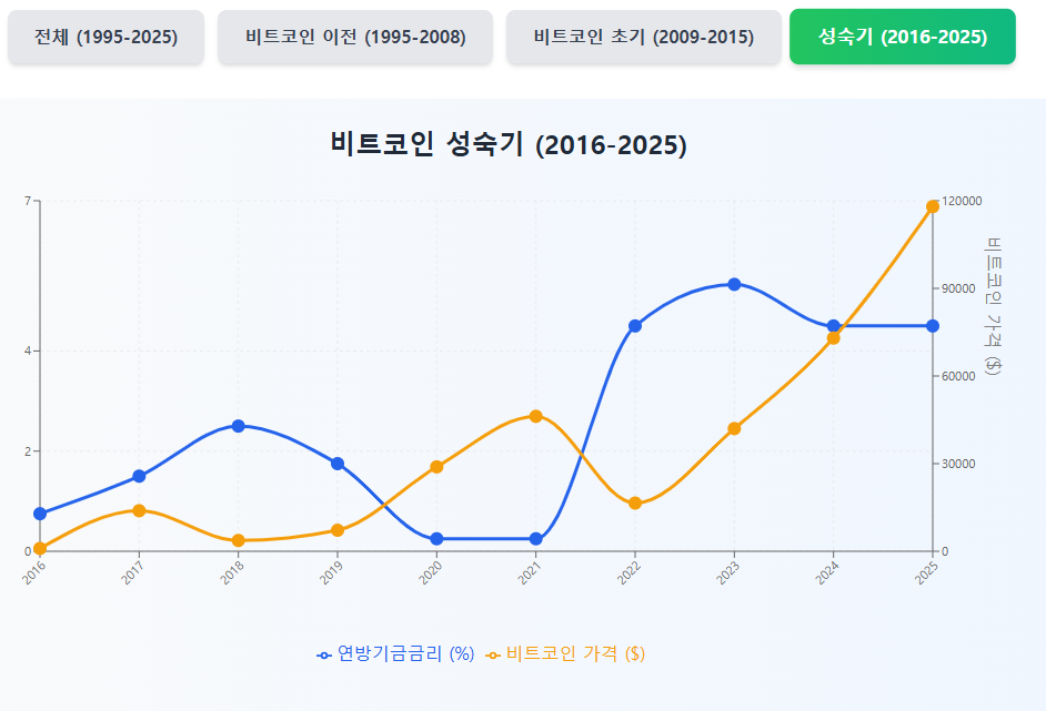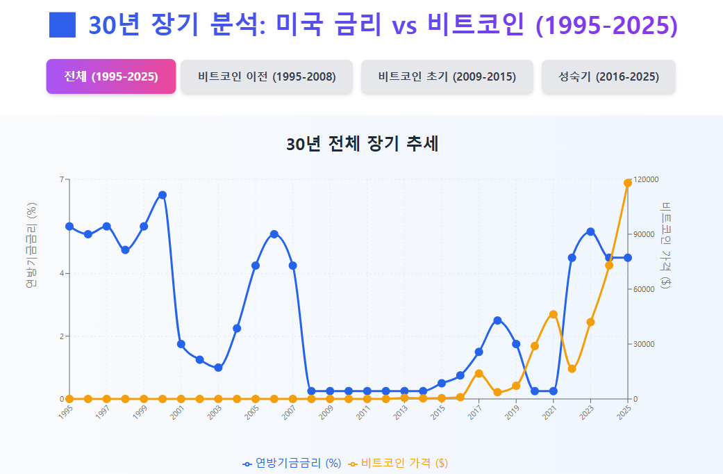 본 분석은 30년간 연방기금금리 데이터와 비트코인 16년 히스토리를 바탕으로 작성되었습니다. 투자 결정 시에는 반드시 전문가와 상담 후 신중하게 판단하시기 바랍니다.