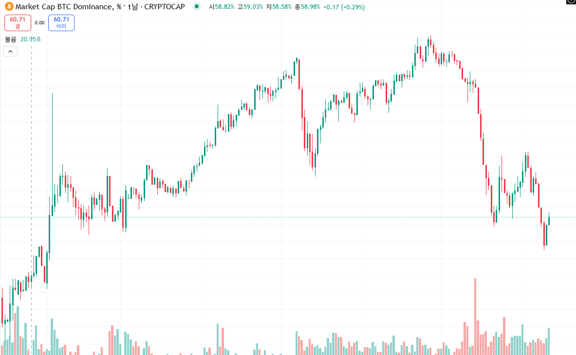 📊 2. 비트코인 도미넌스 58.2%, 알트코인은 아직 이르다